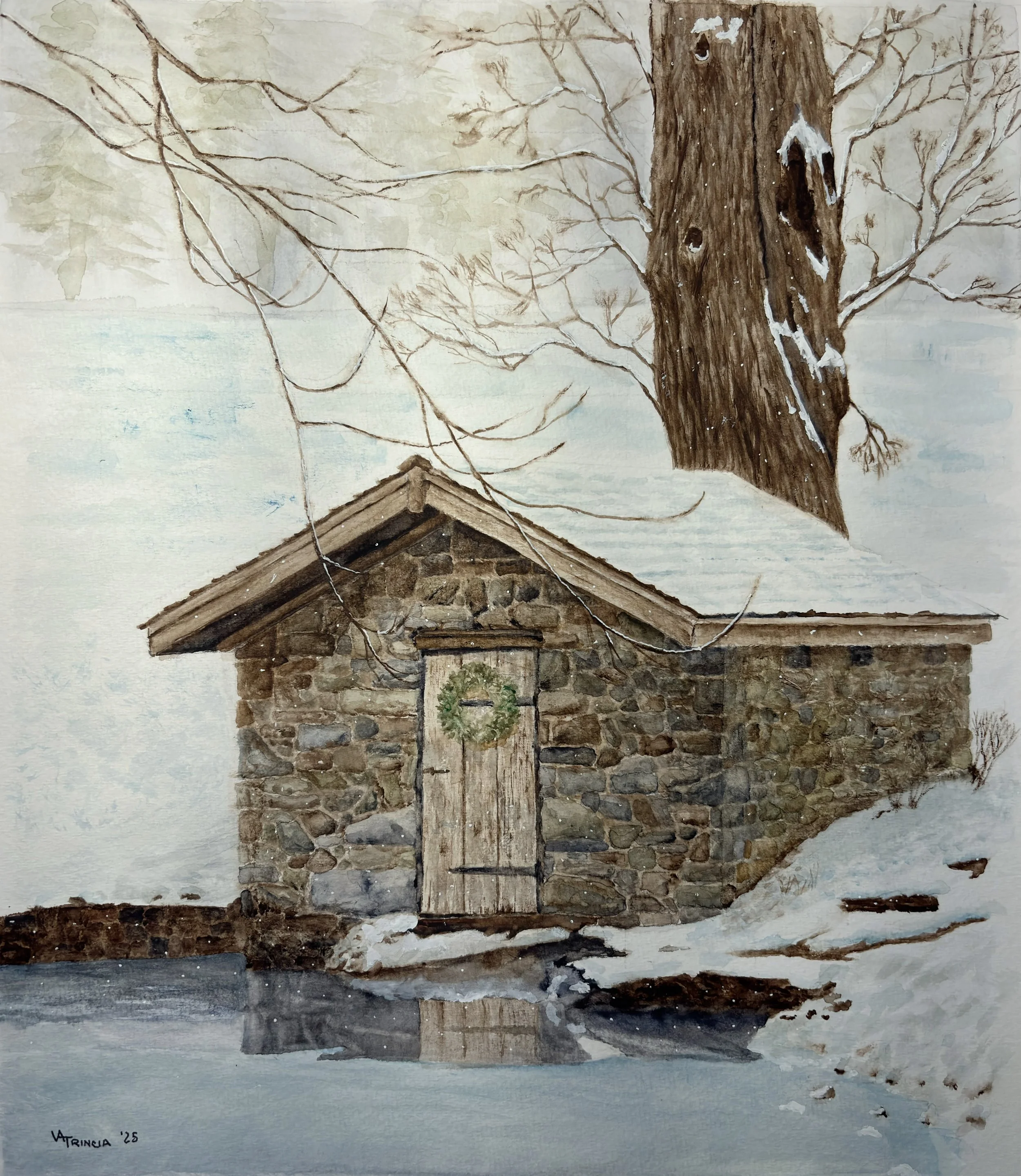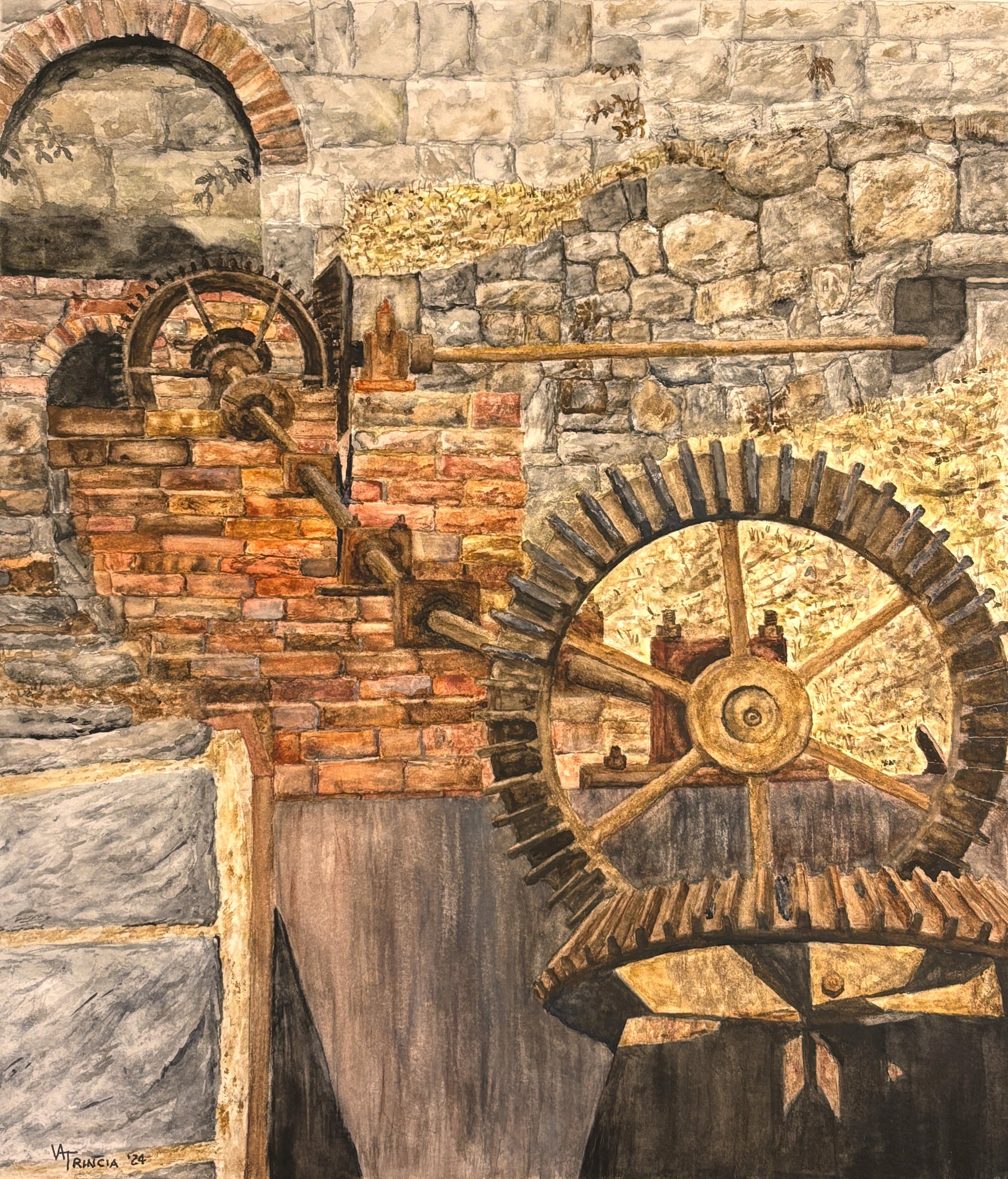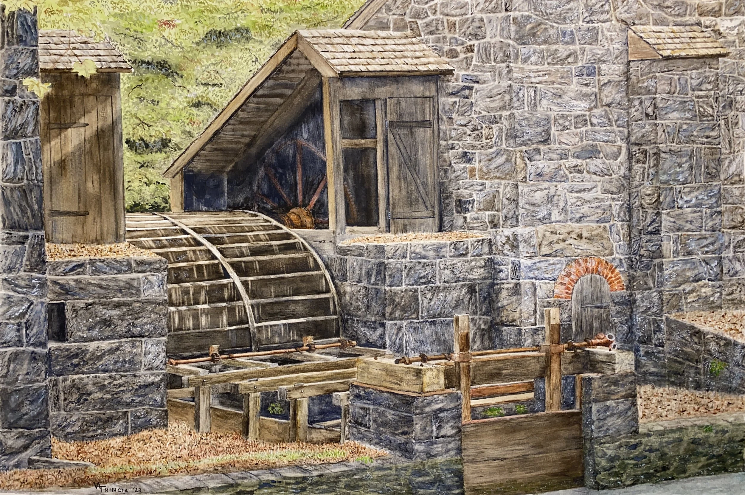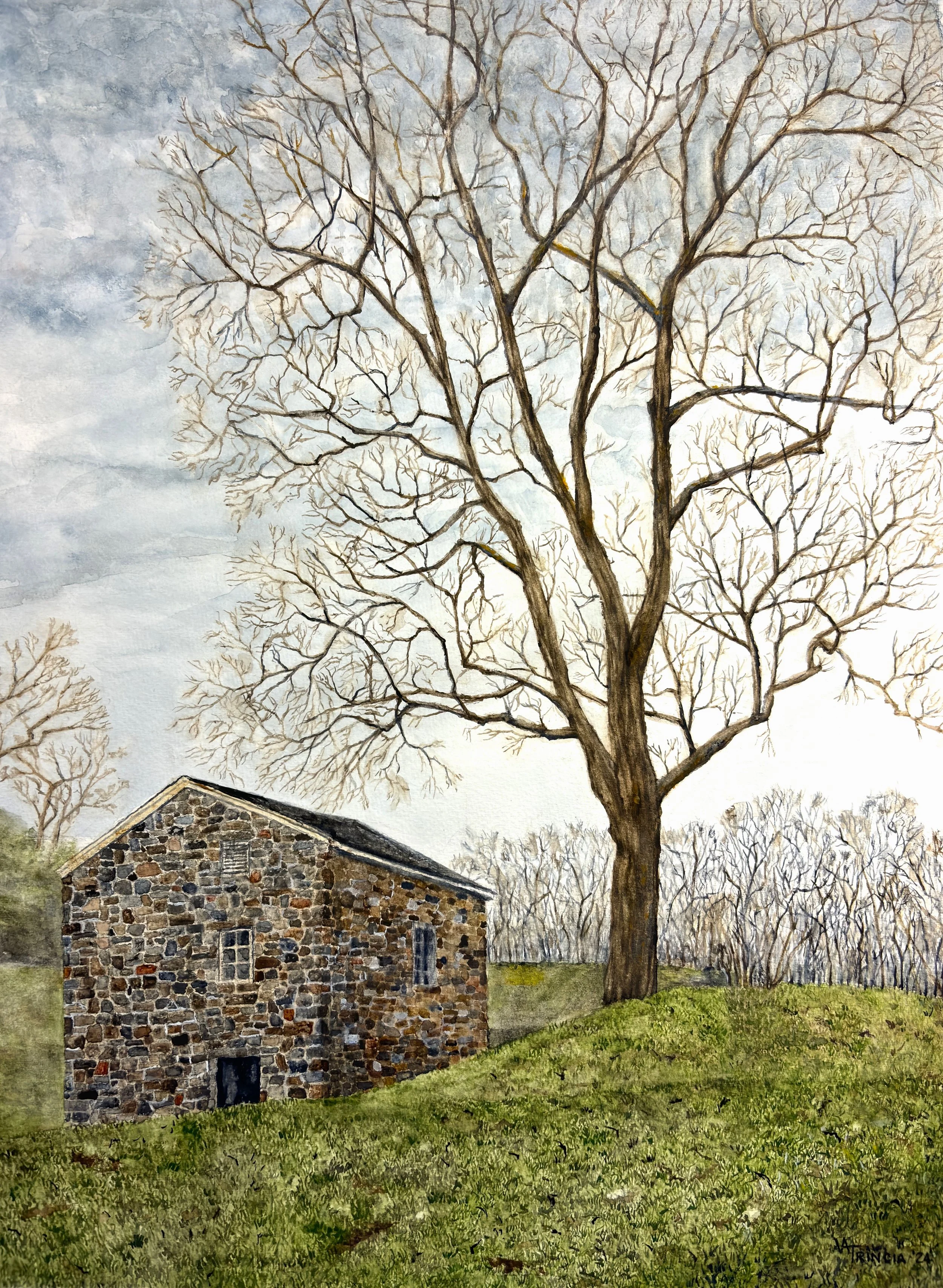 “WINTRY MORNING, HIGH ABOVE BRANDYWINE CREEK” watercolor, image size 13.5”x17”, original & prints available (photo credit: Carol Lynn Thomas) “19th CENTURY TRANSFER OF MOTION” (at Hagley) watercolor, image size 12..25”x14.25”, original & prints available “WINTRY MORNING AT FALLS ON BRANDYWINE CREEK” watercolor, image size 13.5”x17”.5, original & prints available (photo credit: Carol Lynn Thomas) “SPRINGHOUSE AT CHADDS FORD” watercolor, image size 11”x13”, original & prints available (photo credit: Pat McDonough) “DISCARDED GEARS” (Machine shop at Hagley) watercolor, image size 13”x15.5”, original & prints available “ABANDONED FARMHOUSE” Yorklyn, DE watercolor, image size 14”x18”, original available “POWDER MILLS on the BRANDYWINE” watercolor, image size 14”x21”, original & prints available “ROCKFORD TOWER” watercolor, image size 12”x16”, SOLD, prints available “WINTRY AFTERNOON, II (Yorklyn, DE)” watercolor, image size 12.5”x15”, SOLD, prints available “TRACKS AT POWDER MILL” pen & ink/monochromatic watercolor image size 15.5“x21”, original & prints available “WYETH’S WINDOW” pencil image size 10,5”x14.5”, original available “TWIN POWDER MILLS” pen & ink/monochromatic watercolor image size 11.25”x14”, prints available “BRECK’S MILL, II” pen & ink/monochromatic watercolor image size 14,25”x18”, prints available “WINTRY AFTERNOON, I (Yorklyn, DE)” pen & ink/watercolor, image size 10.25”x13”, prints available “BRECK’S MILL, I” pen & ink/monochromatic watercolor image size 12.5”x15”, prints available “MONTCHANIN STATION, TRACKSIDE” pencil, image size 7”x8”, prints available “CART AT HAGLEY MILLRACE” pencil, image size 7”x9”, original and prints available “SLUICE GATE AT HAGLEY MILLRACE” pencil, image size 7”x9”, original and prints available